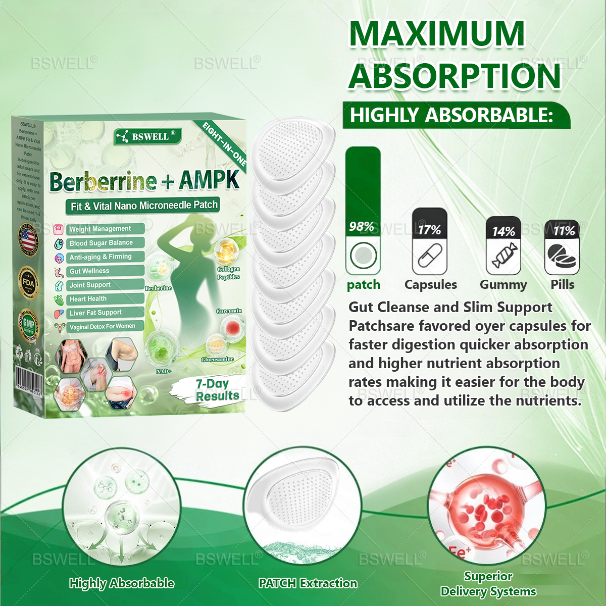 Our mission is to help you achieve a healthier body and improved well-being through innovative, safe, and effective solutions. Thatโs why we created the BSWELLยฎ Full-Body Wellness Patch โ delivering visible results and lasting comfort.